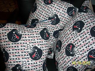 Thanks to jan-maree of cherry red quilter i have made all 7 of my daughters kids still at home pillows. Jan-maree sent me this football fabric months ago and i finally got them finished. The football pillows are for boys, the star is for my dainty granddaughter.