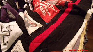 Hagen came over Sat. night and I gave him his quilt. Here he is looking at the block form the Super bowl t-shirt.